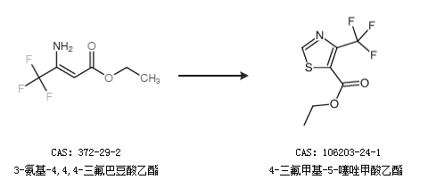 2.通过3-氨基-4,4,4-三氟巴豆酸乙酯合成4-三氟甲基-5-噻唑甲酸乙酯