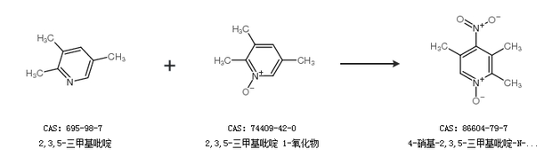 2.通过2,3,5-三甲基吡啶和2,3,5-三甲基吡啶 1-氧化物合成4-硝基-2,3,5-三甲基吡啶-N-氧化物