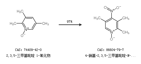 1.通过2,3,5-三甲基吡啶 1-氧化物合成4-硝基-2,3,5-三甲基吡啶-N-氧化物,收率约97%;