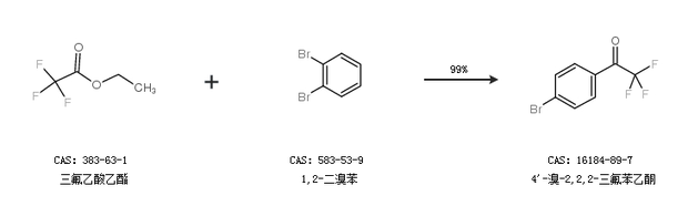 2.通过三氟乙酸乙酯和1,2-二溴苯合成4''-溴-2,2,2-三氟苯乙酮,收率约99%;