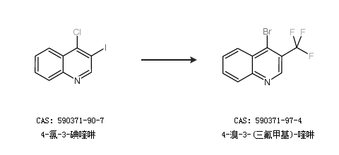 2.通过4-氯-3-碘喹啉合成4-溴-3-(三氟甲基)-喹啉