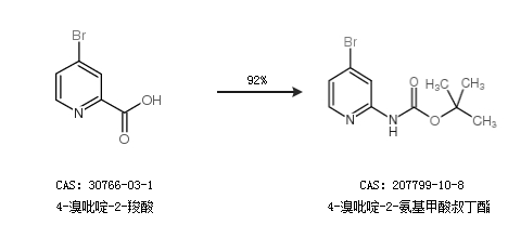 1.通过4-溴吡啶-2-羧酸合成4-溴吡啶-2-氨基甲酸叔丁酯,收率约92%;
