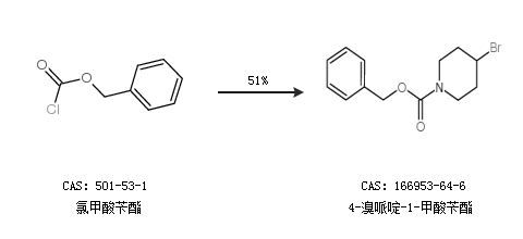 1.通过氯甲酸苄酯合成4-溴哌啶-1-甲酸苄酯,收率约51%;