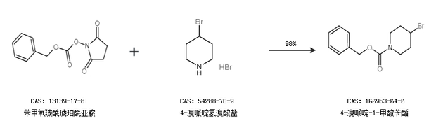 2.通过苯甲氧羰酰琥珀酰亚胺和4-溴哌啶氢溴酸盐合成4-溴哌啶-1-甲酸苄酯,收率约98%;