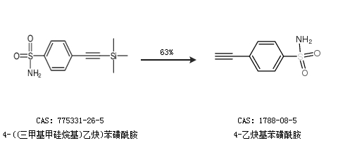 1.通过4-((三甲基甲硅烷基)乙炔)苯磺酰胺合成4-乙炔基苯磺酰胺,收率约63%;