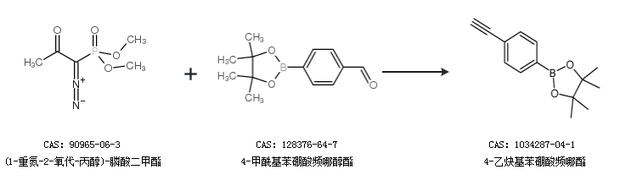 2.通过(1-重氮-2-氧代-丙醇)-膦酸二甲酯和4-甲酰基苯硼酸频哪醇酯合成4-乙炔基苯硼酸频哪酯