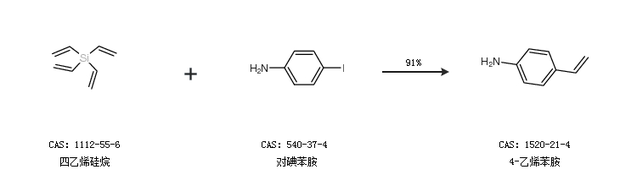 1.通过四乙烯硅烷和对碘苯胺合成4-乙烯苯胺,收率约96%;