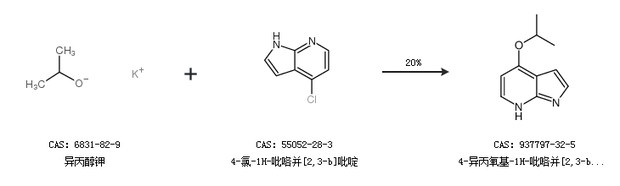 2.通过异丙醇钾和4-氯-1H-吡咯并[2,3-b]吡啶合成4-异丙氧基-1H-吡咯并[2,3-b]吡啶,收率约20%;