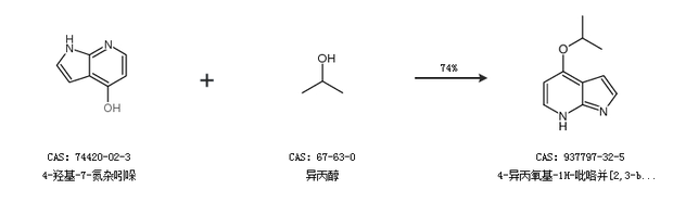 1.通过4-羟基-7-氮杂吲哚和异丙醇合成4-异丙氧基-1H-吡咯并[2,3-b]吡啶,收率约74%;