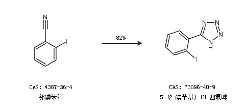 1.通过邻碘苯腈合成5-(2-碘苯基)-1H-四氮唑,收率约82%;