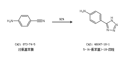 1.通过对氨基苯腈合成5-(4-氨苯基)-1H-四唑,收率约92%;