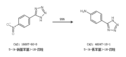 2.通过5-(4-硝基苯基)-1H-四唑合成5-(4-氨苯基)-1H-四唑,收率约99%;