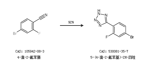 1.通过4-溴-2-氟苯腈合成5-(4-溴-2-氟苯基)-2H-四唑,收率约92%;