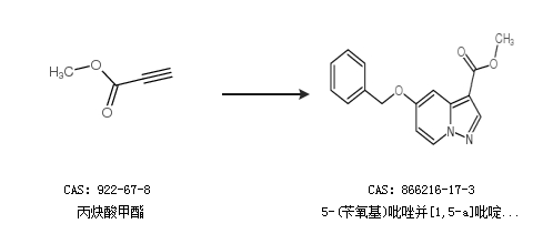 1.通过丙炔酸甲酯合成5-(苄氧基)吡唑并[1,5-a]吡啶-3-羧酸甲酯