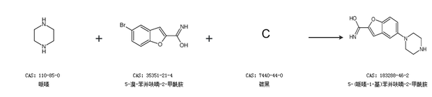 2.通过哌嗪、5-溴-苯并呋喃-2-甲酰胺和碳黑合成5-(哌嗪-1-基)苯并呋喃-2-甲酰胺