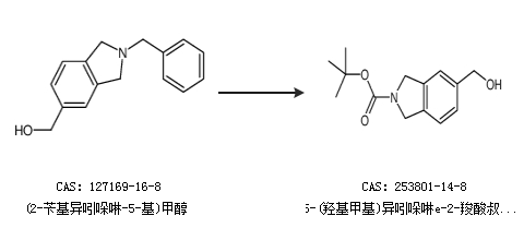 2.通过(2-苄基异吲哚啉-5-基)甲醇合成5-(羟基甲基)异吲哚啉e-2-羧酸叔丁酯