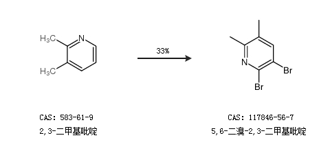 1.通过2,3-二甲基吡啶合成5,6-二溴-2,3-二甲基吡啶,收率约33%;