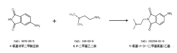 1.通过4-氨基邻苯二甲酰亚胺和N,N-二甲基乙二胺合成5-氨基-2-[2-(二甲基氨基)乙基]-1H-异吲哚-1,3(2H)-二酮