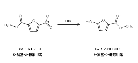 1.通过5-硝基-2-糠酸甲酯合成5-氨基-2-糠酸甲酯,收率约88%;