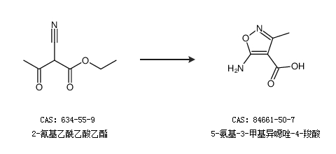 1.通过2-氰基乙酰乙酸乙酯合成5-氨基-3-甲基异噁唑-4-羧酸