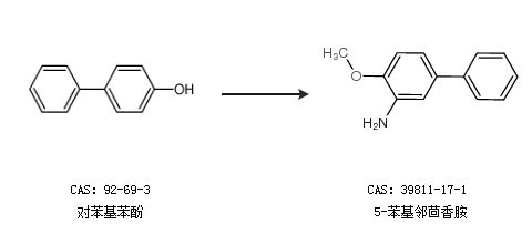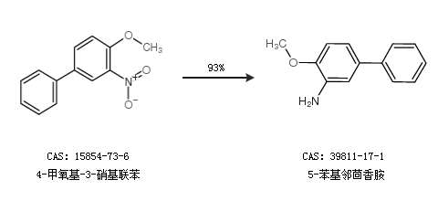 1.通过4-甲氧基-3-硝基联苯合成5-苯基邻茴香胺,收率约93%;