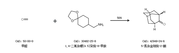 1.通过甲醛和1,4-二氧杂螺[4.5]癸烷-8-甲胺合成5-氮杂金刚烷-2-酮,收率约56%;