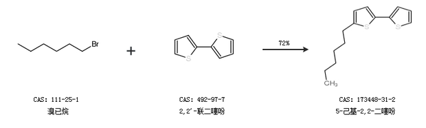 1.通过溴已烷和2,2''-联二噻吩合成5-己基-2,2-二噻吩,收率约72%;