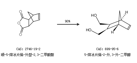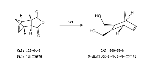 2.通过降冰片烯二酸酐合成5-降冰片烯-2-外,3-外-二甲醇,收率约57%;