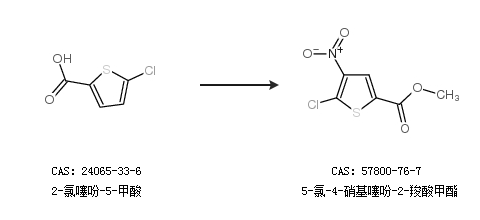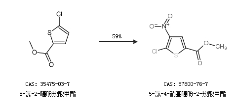 1.通过5-氯-2-噻吩羧酸甲酯合成5-氯-4-硝基噻吩-2-羧酸甲酯,收率约59%;