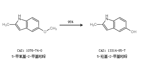 1.通过5-甲氧基-2-甲基吲哚合成5-羟基-2-甲基吲哚,收率约95%;
