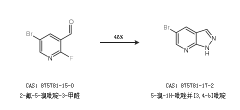 1.通过2-氟-5-溴吡啶-3-甲醛合成5-溴-1H-吡唑并[3,4-b]吡啶,收率约46%;