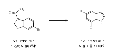 2.通过1-(5-溴-7-氯吲哚-1-基)乙酮合成5-溴-7-氯-1H-吲哚
