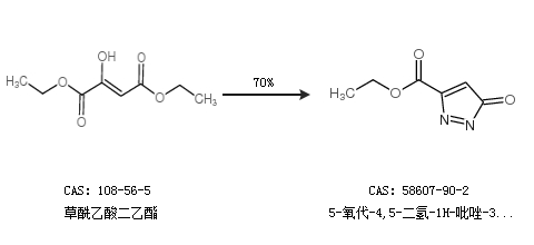 1.通过草酰乙酸二乙酯合成5-氧代-4,5-二氢-1H-吡唑-3-羧酸乙酯,收率约70%;