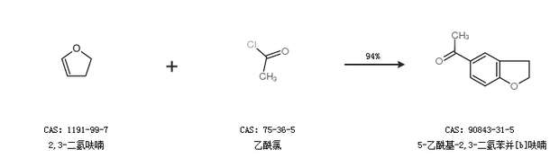 2.通过2,3-二氢呋喃和乙酰氯合成5-乙酰基-2,3-二氢苯并[b]呋喃,收率约94%;