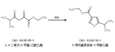 1.通过2,4-二氧代-5-甲基-己酸乙酯合成5-异丙基异恶唑-3-甲酸乙酯,收率约96%;