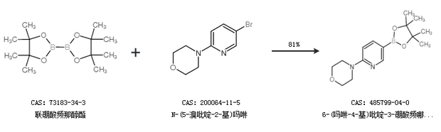 1.通过联硼酸频那醇酯和N-(5-溴吡啶-2-基)吗啉合成6-(吗啉-4-基)吡啶-3-硼酸频哪醇酯,收率约81%;