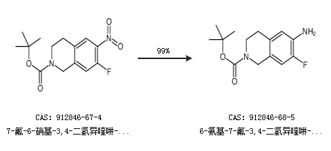 1.通过7-氟-6-硝基-3,4-二氢异喹啉-2(1h)-羧酸叔丁酯合成6-氨基-7-氟-3,4-二氢异喹啉-2(1h)-羧酸叔丁酯,收率约99%;