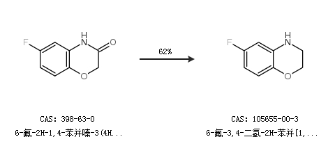 1.通过6-氟-2H-1,4-苯并嗪-3(4H)-酮合成6-氟-3,4-二氢-2H-苯并[1,4]恶嗪,收率约62%;