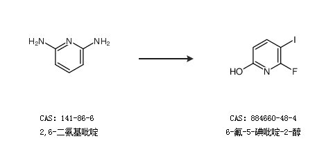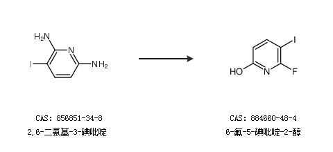 2.通过2,6-二氨基-3-碘吡啶合成6-氟-5-碘吡啶-2-醇