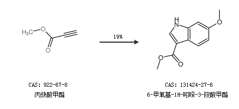 2.通过丙炔酸甲酯合成6-甲氧基-1H-吲哚-3-羧酸甲酯,收率约19%;
