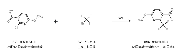 1.通过2-氯-6-甲氧基-3-硝基吡啶和二溴二氟甲烷合成6-甲氧基-3-硝基-2-(三氟甲基)吡啶,收率约52%;