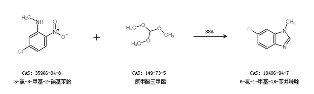 1.通过5-氯-N-甲基-2-硝基苯胺和原甲酸三甲酯合成6-氯-1-甲基-1H-苯并咪唑,收率约88%;