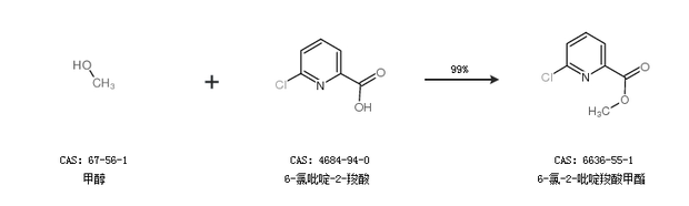 1.通过甲醇和6-氯吡啶-2-羧酸合成6-氯-2-吡啶羧酸甲酯,收率约99%;