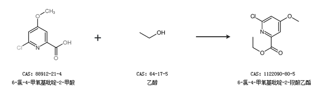 1.通过6-氯-4-甲氧基吡啶-2-甲酸和乙醇合成6-氯-4-甲氧基吡啶-2-羧酸乙酯