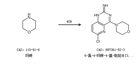 1.通过吗啉合成6-氯-4-吗啉-4-基-吡啶并[3,2-d]嘧啶-2-胺,收率约40%;