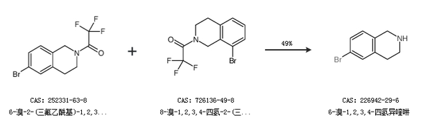 1.通过6-溴-2-(三氟乙酰基)-1,2,3,4-四氢异喹啉和8-溴-1,2,3,4-四氢-2-(三氟乙酰基)异喹啉合成6-溴-1,2,3,4-四氢异喹啉,收率约49%;