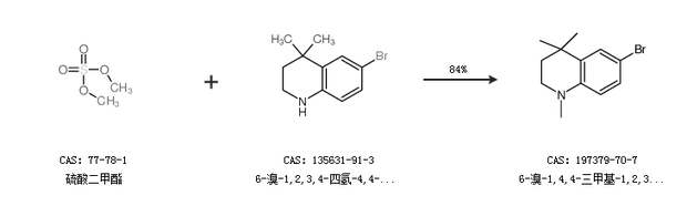1.通过硫酸二甲酯和6-溴-1,2,3,4-四氢-4,4-二甲基喹啉盐酸盐合成6-溴-1,4,4-三甲基-1,2,3,4-四氢-喹啉,收率约84%;
