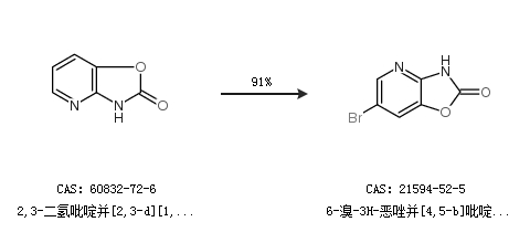 1.通过2,3-二氢吡啶并[2,3-d][1,3]噁唑-2-酮合成6-溴-3H-恶唑并[4,5-b]吡啶-2-酮,收率约91%;