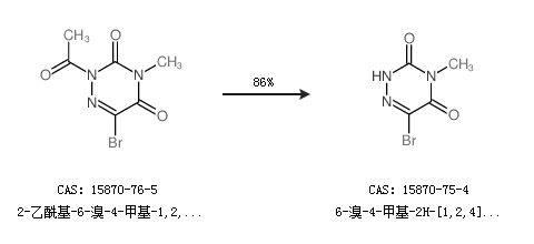 1.通过2-乙酰基-6-溴-4-甲基-1,2,4-三嗪-3,5(2H,4H)-二酮合成6-溴-4-甲基-2H-[1,2,4]三嗪-3,5-二酮,收率约86%;