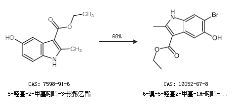 英文别名 6-bromo-5-hydroxy-2-methyl-indole-3-carboxylic acid ethyl ester;ethyl 6-bromo-5-hydroxy-2-methylindole-3-carboxylate;5-Hydroxy-6-brom-3-ethoxycarbonyl-2-methyl-indol;6-Bromo-5-hydroxy-2-methyl-1H-indole-3-carboxylic acid ethyl ester;6-Brom-5-hydroxy-2-methyl-indol-3-carbonsaeure-ethylester;